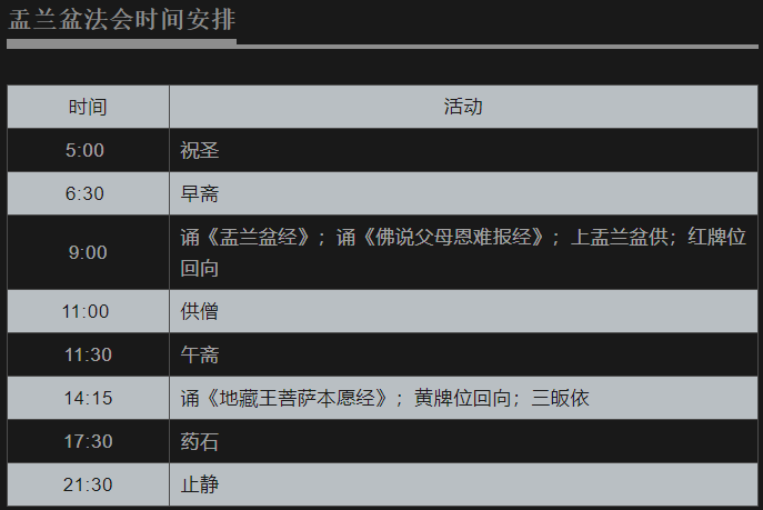 2023年8月30日(农历七月十五)是盂兰盆节,又是佛欢喜日和自恣日,佛教徒的孝亲节。每逢此日,僧俗四众、善男信女向十方僧众陈设供养,凭借供佛供僧普度的功德力,加被我们累世父母脱离苦难获得安乐,回向现世父母身体健康、延年益寿。为圆满广大信众孝亲度亡之愿,北京天开寺于8月30日启建盂兰盆法会。