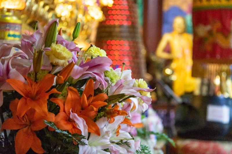 活动期间办理祈福消灾牌位、供斋供灯、无相布施等佛事请联系佛事组 (微信同号):18301131836