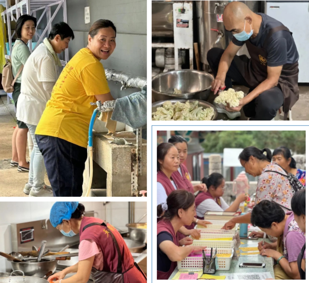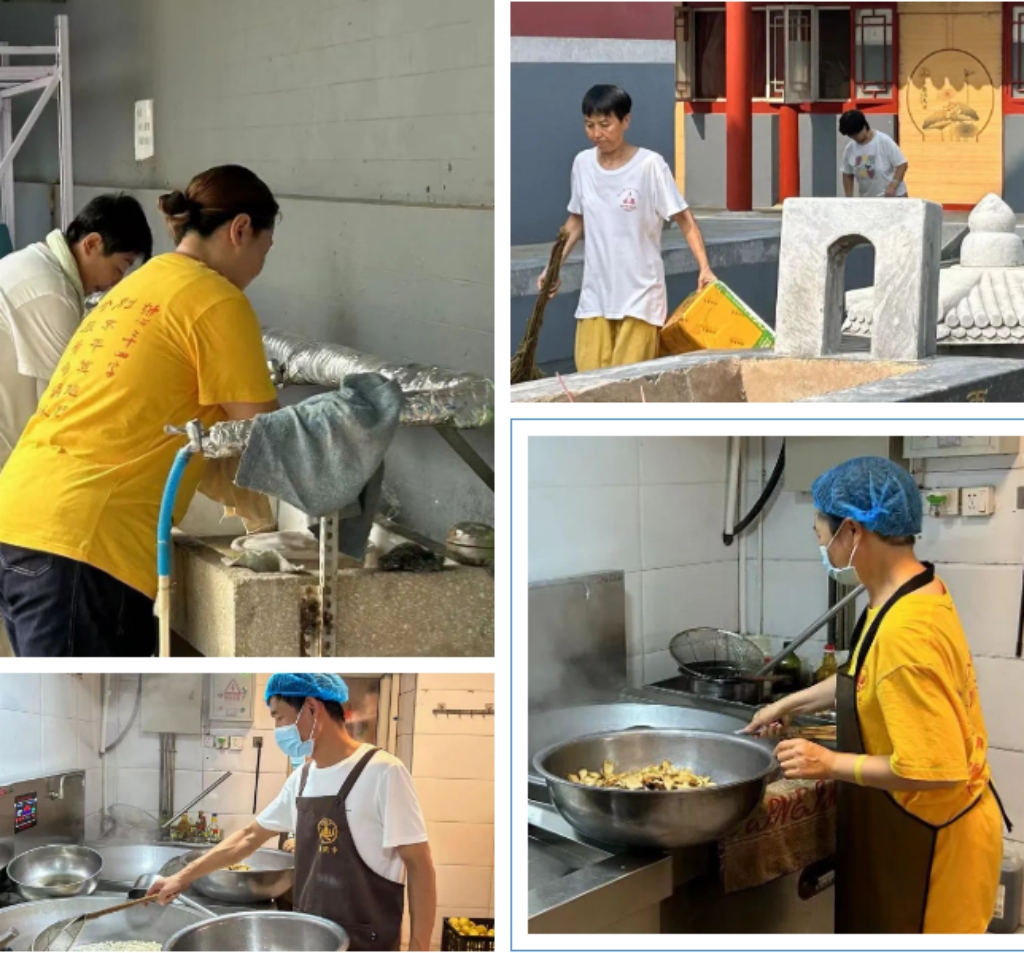 通过在寺院次第系统地修学,义工们积极参与法会服务、放生、推广素食等活动,将佛法的智慧与慈悲传递给更多的人;于每一个微小的善行中,践行“炼心二十四字”(别不平、莫抱怨、会欣赏、勿强求、要感恩、习莫牵、为意主、普贤行)及利他“四给”(给人信心、给人欢喜、给人希望、给人方便)。