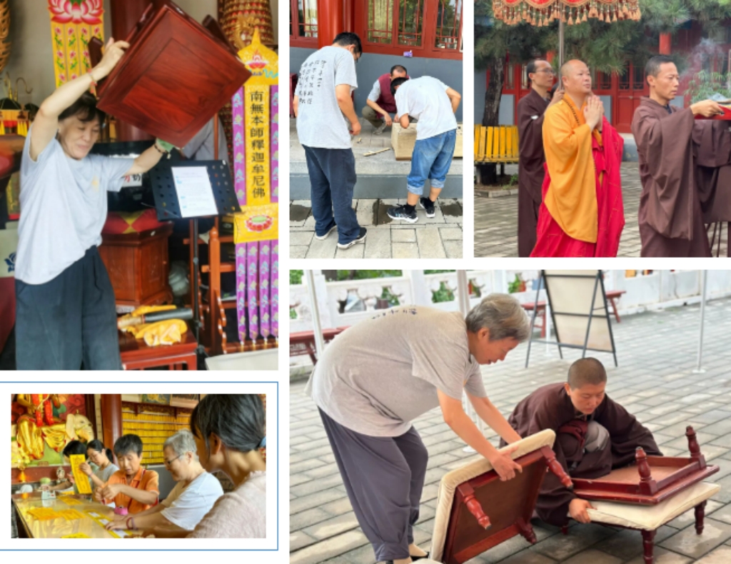 从晨光初破到夜幕低垂,他们的身影忙碌而坚定,无论是布置会场、引导信众,还是维护秩序、清扫尘埃,每一份努力都凝聚着对佛法的敬仰与对众生的关爱。