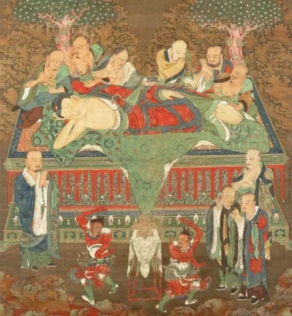 这年雨季过后,他带领着自己的弟子来到拘尸那迦的拔提河边,沐浴身体。之后在两棵娑罗树中间安卧,并告诉自己的弟子“我将于今晚涅槃”。