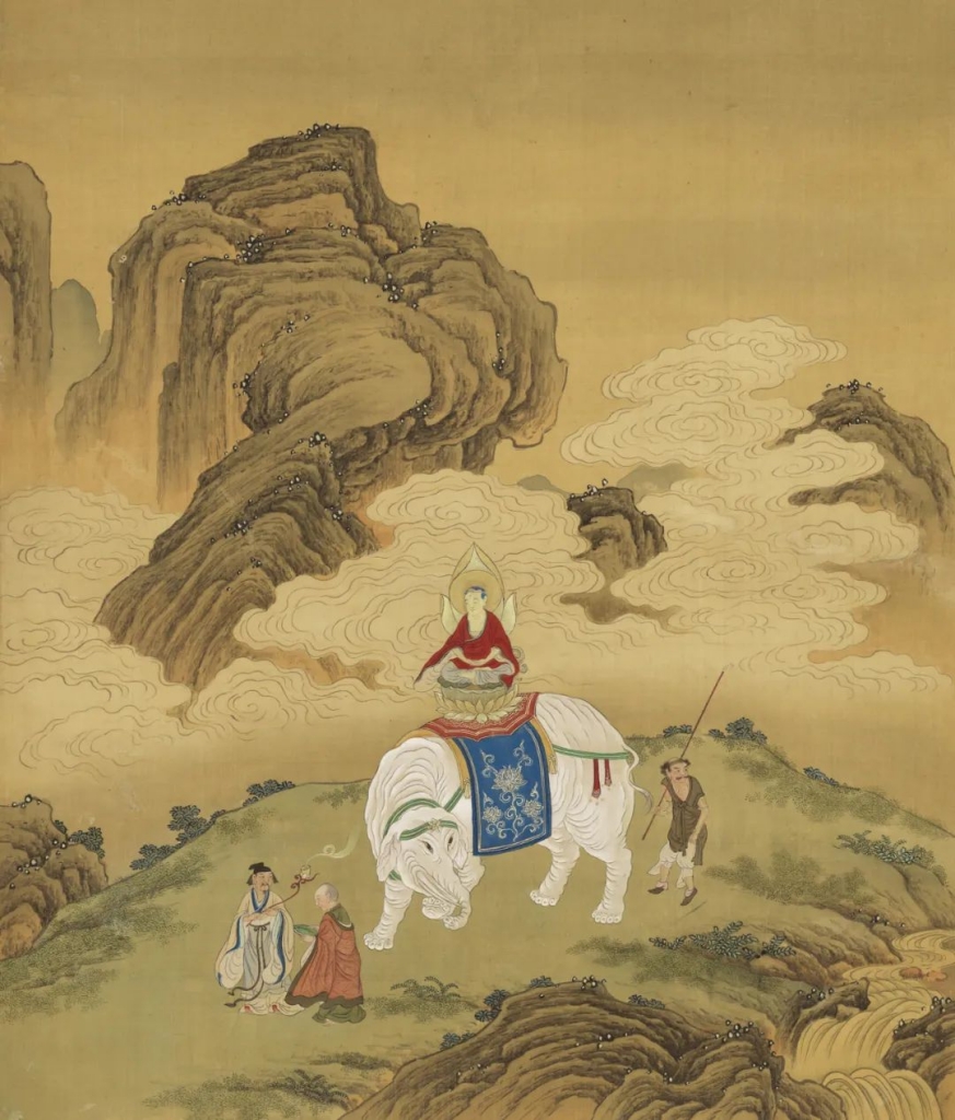 “大象”是普贤菩萨的坐骑,“大象”表佛的体性“广大、有力、光明”,这个光明也是普贤菩萨,此光明不需要“点”,只要“悟”,有点则有灭,真正普贤菩萨的光明为不增不减的大光明藏。
