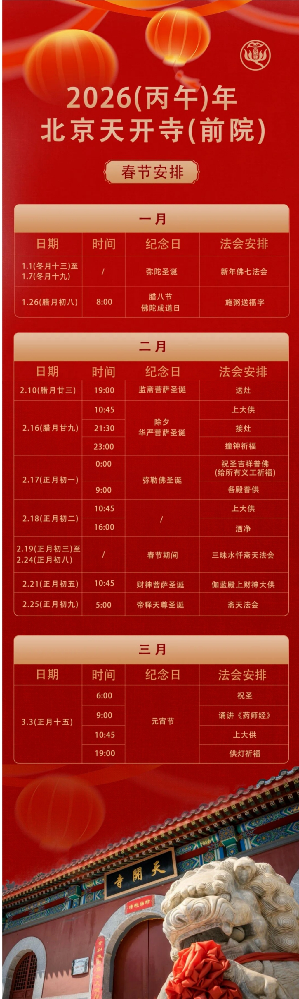 法务公告丨天开寺(前院)启建丙午新春三昧水忏斋天法会